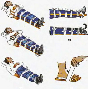 Ознайомтеся зі способами знерухомлення при переломах стегна [91], кісток гомілки [92], стопи [93].