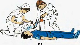 при зупинці дихання негайно почати штучну вентиляцію легень, при зникнення пульсу масаж серця;