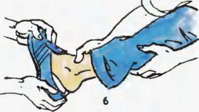 повністю роздягати потерпілого без особливої на те потреби (особливо в холодну пору) не слід. Треба звільняти від одягу тільки ту частину тіла, на яку необхідно маніпулювати [7] ;