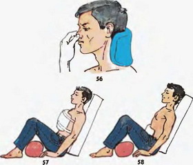 При зупинці часто зустрічається носової кровотечі слід забезпечити потерпілому приплив повітря, розстібнути комір одягу, посадити з дещо опущеною головою вперед і накласти холодний компрес (наприклад, хустку, змочену холодною водою) на ділянку носа і перенісся. Потерпілий повинен притиснути обидві половини носа до носової перегородки на 10-15 хвилин і дихати ротом, акуратно спльовуючи кров, яка потрапляє в рот, не змінюючи положення голови, не можна при цьому рухатися, розмовляти, кашляти, сякатися. Допомога буде більш ефективною, якщо накласти холодні компреси на потилицю і груди в області серця [56].