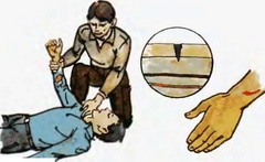 Пальцеве притиснення артерії. Артерію притискають до кістки в анатомічно вигідних для цієї маніпуляції місцях - там, де артерія проходить поблизу кістки і доступна для здавлювання [44]. Знаючи точки, в яких необхідно притискати відповідні артерії, можна швидко тимчасово зупинити артеріальну кровотечу, виграти час для застосування більш надійного способу [45, 46].
