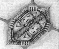 ![]() Рис. 30. Підшивання діафрагми до грудної стінки при трансплевральном доступ до купола печінки. |