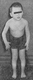 ![]() Рис. 5. Хворий X., 7 років. Атонически-астатичними форма дитячого церебрального паралічу. |