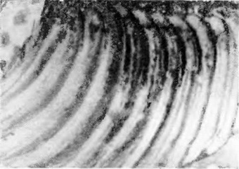 ![]() Рис. 6. Крововиливи під костальної плеврою по ходу міжреберних кровоносних судин. |