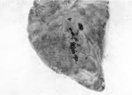 ![]() Рис. 7. Крововиливи по ходу коронарних судин. |