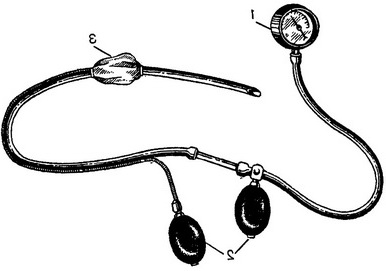 1 - манометр; 2 - балон Річардсона; 3 - надувна манжетка