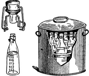 Цей апарат являє собою звичайну каструлю, в яку вставляється дротяна стійка з гніздами на 6-12 пляшечок. У каструлю наливають теплу воду трохи вище рівня молока в пляшках, апарат закривають кришкою, потім ставлять на плиту або примус, і воду нагрівають до кипіння, підтримуваного протягом 3-5 хвилин. Цього досить, щоб убити більшість бактерій; більш тривале нагрівання несприятливо позначається на фізичних, хімічних та смакових якостей молока.