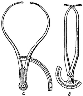 Ємність тазу прийнято оцінювати на підставі аналізу цифрових показників, одержуваних при інструментальному вимірі. Для вимірювання тазу вживається спеціальний інструмент - тазомер (рис. 12).