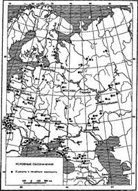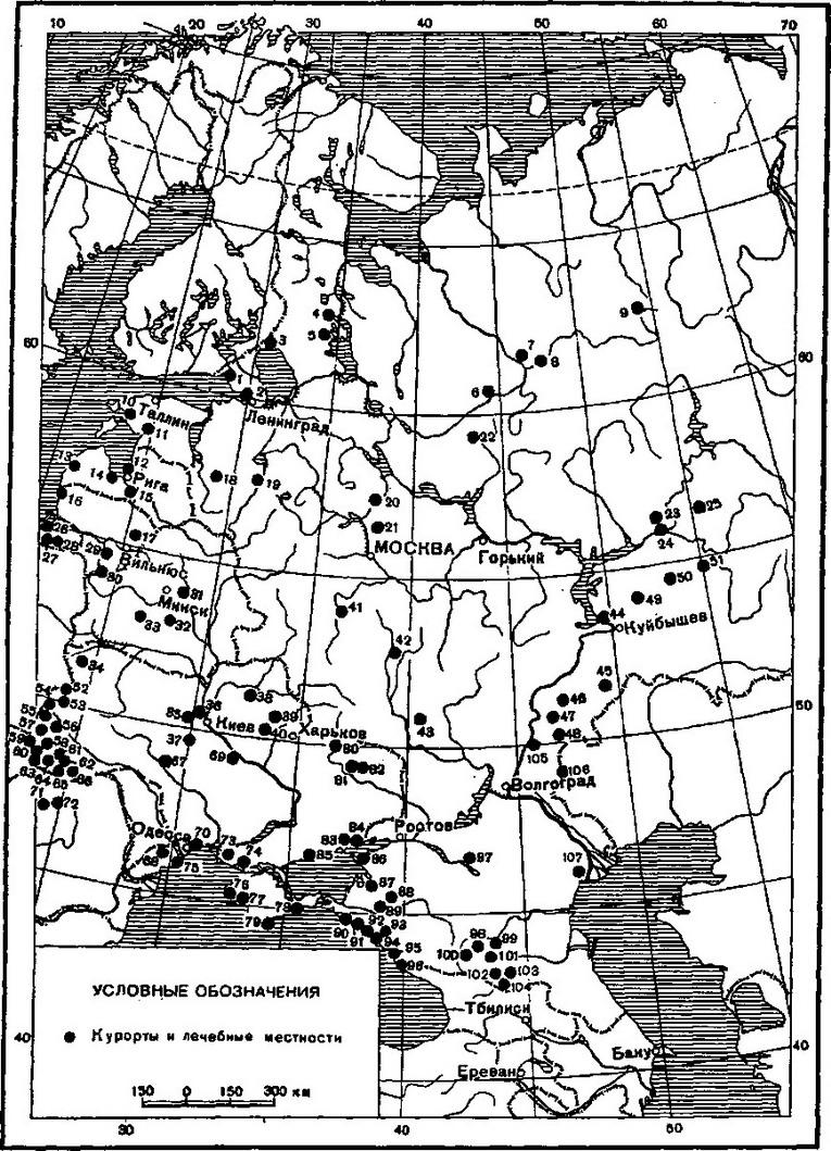 Рис. 1. Курорти і лікувальні місцевості Європейської частини СРСР: