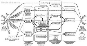Медсанбат розгортає відділення спеціальної обробки, приймально-сортувальне і евакуаційне, операційно-перев'язне і протишокову, госпітальне, а також підрозділи обслуговування (рис.).