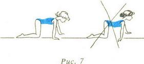 Неправильно: стегно і гомілку опорної ноги не утворюють прямого кута, таз висунутий, розслаблені м'язи живота. Стоячи на четвереньках (рис. 7 )