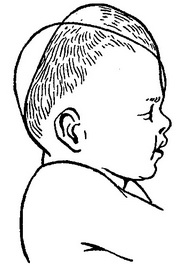 Рис. 87. Форма голівки новонародженого, народженого в переднеголовном передлежанні.