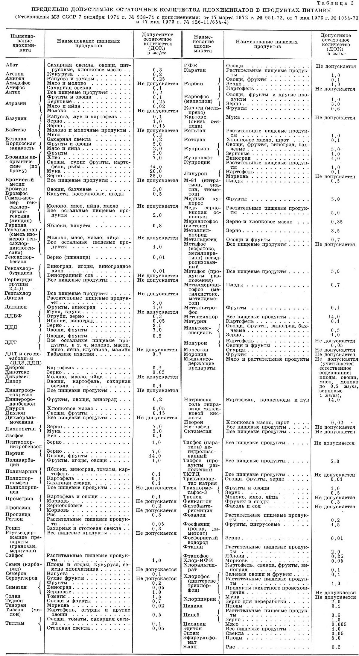 У кожному колгоспі, радгоспі повинен проводитись суворий облік використання сільськогосподарських отрутохімікатів для обробки рослин, який відображає наступні відомості: найменування продовольчих (із зазначенням - плодоносна, неплодоносящая), технічних, фуражних культур, назва використаних отрутохімікатів, їх форму, спосіб і дата обробки, витрата препарату, дату зняття врожаю, а також прізвища осіб, відповідальних за обробку пестицидами. Таким же чином проводиться облік на тваринницьких фермах і птахофермах. Продовольчі, технічні та фуражні культури обробляються агрохімікатами тільки в строго встановлені терміни згідно з чинними інструкціями МСХ СРСР, погодженими з МОЗ СРСР.