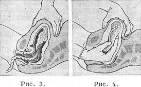 ![]() Рис. 3. Виділення посліду за Креде-Лазаревичу. Рис. 4. Ручне відділення плаценти. |