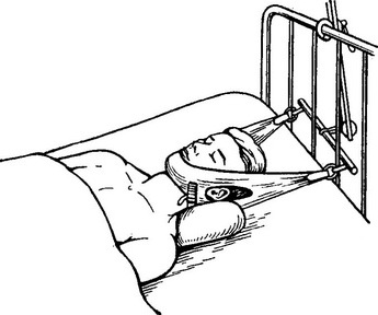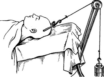 Рис. 50. Витягування петлею Глиссона при пошкодженні шийного відділу хребта.