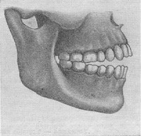 Прямий прикус - щипцеподібне співвідношення фронтальних зубів (рис. 1,3). Бипрогнатия - фронтальні зуби розташовані ножницеобразно і нахилені вперед, також вперед нахилені ділянки альвеолярних відростків.