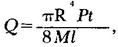 де кількість рідини Q, що випливає за час t через трубку, прямо пропорційно четвертого ступеня радіуса трубки R і тиску Р і обернено пропорційна в'язкості рідини М і довжині трубки l. Фактично при вимірюванні за цією формулою кількість крові, що протікає по судинах за одиницю часу, буває менше, що залежить від розтяжності і еластичності судинної стінки. Ця формула дає змогу визначати енергію потоку крові в залежності від тиску.