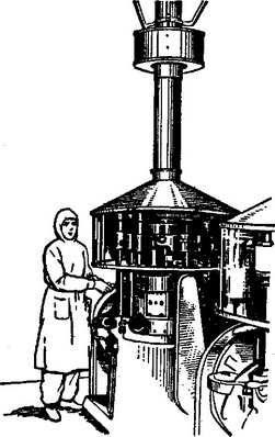 Рис. 57. Укриття таблеткових машин з відсмоктуванням запиленого повітря (ковпак піднято).