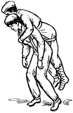![]() Рис. 31. Перенесення потерпілого на плечі. |