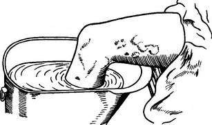 Рис. 12. Занурення кінцівки з трофічною виразкою в ванну з 1% розчином соди.