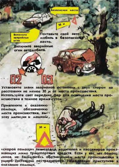 Залучіть до надання допомоги, позначення місця події, викликом міліції і машини «швидкої допомоги» пішоходів, водіїв і пасажирів, які проїжджають повз транспортних засобів. Якщо у вас немає помічників, не займайтеся позначенням місця події у збиток стану потерпілого. Негайно приступите до надання допомоги.