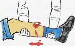 при сильному кровотечі для економії часу одяг розрізають, звільнивши при цьому місце поранення [5];