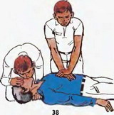 Якщо реанімаційними заходами зайняті дві людини, один проводить штучну вентиляцію легенів, а другий - закритий масаж серця (вдування повітря в легені після 5 натискань на грудину) [38].