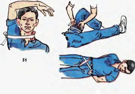 Як імпровізованого джгута можна використовувати ремінь, склавши його відповідним чином [54], або косинку [55].