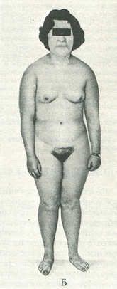 ![]() 347. Несправжній гермафродитизм. А - надмірно розвинений клітор, що приймається за статевий член; Б - зовнішній вигляд.  |