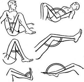 ![]() Рис. 6. Кути, що визначають рухливість в суглобах нижньої кінцівки.  |