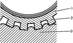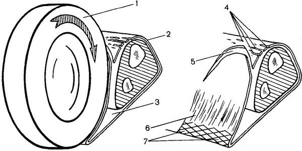 ![]() Рис. 41. Освіта відбитку протектора колеса на шкірі. 1 - колесо; 2 - виступи протектора колеса; 3 - шкіра. |