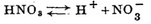 Азотна кислота диссоциируется у водних розчинах на іони: