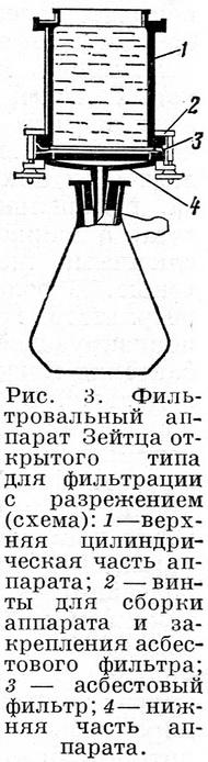 1) керамічні [свічки Шамберлана (рис. 1) або Беркефельда]; фільтруючим матеріалом в цих бактеріальних фільтрах служить каолін з домішкою кварцу або муть земля, піддана випалу; 2) скляні фільтри (рис. 2) - воронки Бюхнера з впаянной платівкою з мелкопористого скла; 3) коллодийные пластинчаті фільтри, що виготовлюються із нітроклітковини або ацетилцелюлози (зокрема, фільтри Элфорда). В СРСР випускали коллодийные фільтри діаметром 35 мм для використання у фільтрувальному апараті Зейтца (рис. 3)