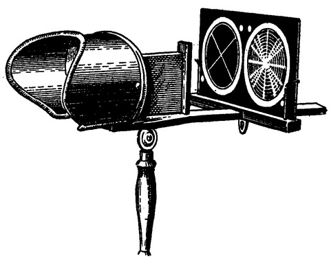 Методи визначення глибинного, просторового зору складні. Орієнтовно можна спробувати визначити його на стереоскопе (рис. 27). В стереоскоп дивляться обома очима на подвійний малюнок. На одній половині, наприклад, зображений циферблат, на іншій - стрілки. Обстежуваний, у якого нормальне бінокулярний зір, скаже, що зображено циферблат годинника і стрілки показують такий-то час. Хворий, у якого зір порушено, буде бачити окремо циферблат і окремо стрілки. Стереоскоп вживають також вправи для осіб з порушеним бінокулярний зір.