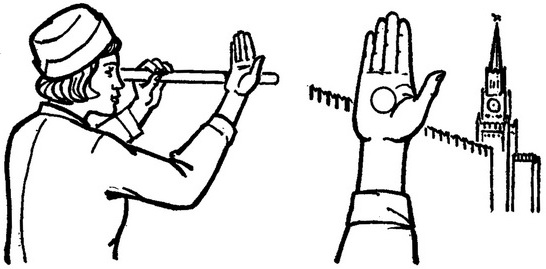 Рис. 29. Досвід з «дірою в долоні» (для визначення бінокулярного зору).