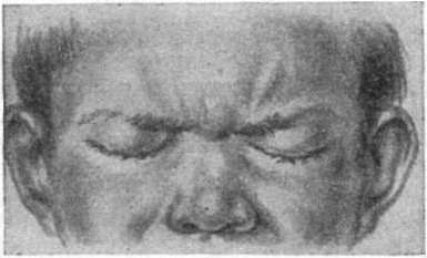 Блефароспазм - спазм кругового м'яза повік (рис.). Розвивається рефлекторно у відповідь на подразнення закінчень трійчастого нерва при захворюваннях очей, а також інших органів (запалення мозкових оболонок, карієс зубів і ін). Часто блефароспазм супроводжує туберкульозно-алергічні захворювання кон'юнктиви і рогівки у дітей, а також шкіри повік, особливо при наявності тріщин у зовнішнього кута очної щілини. Блефароспазм може виникнути при попаданні чужорідного тіла на кон'юнктиву верхньої повіки або на рогівку. Лікування блефароспазму зводиться до усунення викликає його причини.