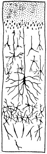 Рис. 57. Мікроструктура кори великих півкуль (схематичний малюнок на дошці)