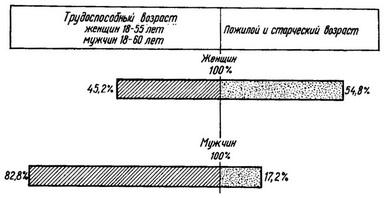 Рис. 2. Процентне співвідношення захворювань трофічними виразками в залежності від віку і статі.