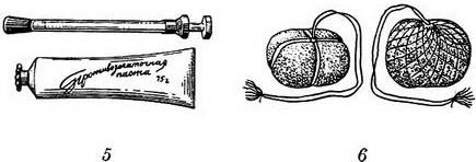 3 - «пружинка»; 4 - «парасолька»; 5 - паста в тюбику (вгорі шприц); 6 - губка.
