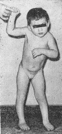 ![]() Рис. 5. Хворий X., 7 років. Атонически-астатичними форма дитячого церебрального паралічу. |