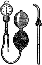 Для перевірки прохідності маткових труб дуже зручно користуватися спеціальним апаратом, який дозволяє визначити не тільки прохідність, але і зареєструвати їх перистальтику. При відсутності його можна застосувати простий апарат, сконструйований А. А. Івановим (рис. 13), Він складається з металевої канюлі, з'єднана гумовою трубкою з манометром. Перед вживанням вони підлягають стерилізації.