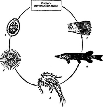 Спільне в таких різних за симптомами захворювань те, що здорова людина може ними захворіти, вживаючи в їжу рибу прісноводних річок і озер (щука, окунь, минь, йорж), якщо вона заражена личинками цих паразитів. При цьому людина - не єдине джерело зараження. Господарями цих паразитів є також деякі дикі і домашні тварини, у харчовий раціон яких входить риба.