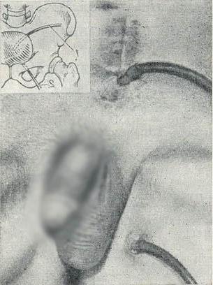 Марлеві тампони і марлеві смуги мають обмежене застосування для дренування, так як, просочуючись виділеннями, швидко втрачають гігроскопічність і перестають виводити вміст. Гумові смуги (наприклад, з рукавичкової гуми) застосовують у ряді випадків у післяопераційному періоді для дренування ран. По мірі зменшення кількості виділень з рани їх видаляють. Найчастіше для дренування застосовують трубки з синтетичних матеріалів і гуми різних діаметрів з декількома отворами на кінці, що вводиться в дреноване порожнину. Перед введенням дренажні трубки промивають, перевіряють їх прохідність і міцність щоб уникнути відриву і стерилізують. Дренажну трубку вводять через рану або додатковий розріз - контрапертуру (див.). Для попередження випадіння дренажну трубку іноді прикріплюють швом або пластиром до шкіри. До зовнішнього кінця дренажної трубки, введеної в порожнину (очеревини, плеври та ін), прив'язують марлеву серветку, щоб вона не пішла в глибину. Трубку на рівні виходу її з рани щільно обв'язують ниткою :при виходженні дренажної трубки з рани нитка буде вище рівня шкіри, при більш глибокому зануренні - не буде видно. Для евакуації ексудату з плевральної порожнини застосовують сифонное дренування (рис. 1). Через прокол троакаром міжреберного проміжку в плевральну порожнину вводять дренажну трубку, кінець якої занурюють у посудину з антисептичною рідиною. У деяких випадках при дренуванні плевральної порожнини, для того щоб уникнути присмоктування повітря зовні, на зовнішній кінець дренажної трубки надягають палець від гумової рукавички зі зрізаною верхівкою, спадающейся при вдиху (так званий клапанний дренаж).