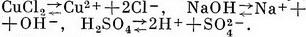 де KpAq - недіссоціірованних молекула, Кп+1 - катіон, який несе n1 позитивних зарядів, Ап2 - аніон, що має n2 негативних зарядів, р і q - число катіонів і аніонів, що входять до складу молекули електроліту. Так, наприклад, дисоціація сірчаної кислоти і гідрату окису амонію виражається рівняннями: