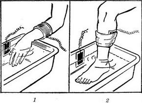 ![]() Рис. 2. Однокамерні ванни: 1 - для руки; 2 - для ноги. |