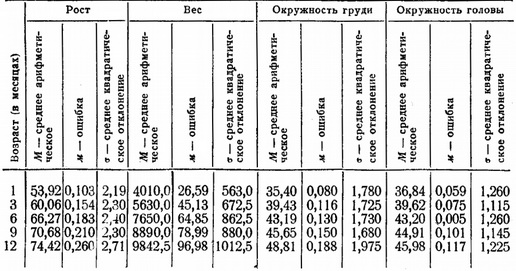 Для прикладу ми наводимо скорочений таблицю з роботи Орлова, в якій вказані М - середні арифметичні для кожного розміру; м - середня похибка; σ - середнє квадратичне відхилення (табл. 17). Межами норми для кожного вимірювання береться величина, що дорівнює ±2σ, межами середньої норми будуть величини, лежать між +0,5σ і - 0,5σ, нижче і вище середнього - від величини ± 0,5σ до ± 1,0σ, величини від + 1,0σ до + 2,0σ - великі і від - 1,0σ до -2,0σ - малі. Варіанти, які виходять за межі ± 2 а, розглядаються як аномальні, тобто виходять за межі нормального варіаційного ряду.