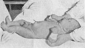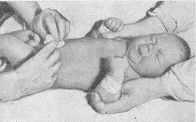 Рис. 102. Пов'язка на Чистякової. Новонароджений з неперевязанным залишком пупкового канатика.