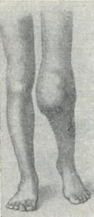 Контури суглоба згладжуються, нога приймає вимушене положення - напівзігнута в коліні (рис. 1). У порожнині суглоба накопичується значна кількість випоту, який визначається за балотування надколінка (рис. 2). При скупченні гною в порожнині колінного суглоба шкіра над суглобом набрякла, гіперемована, пасивні та активні рухи різко болючі і обмежені. Температура тіла підвищується, відзначаються лейкоцитоз, прискорена ШОЕ. Найбільш важко протікає флегмонозний жене з гнійним розплавленням навколишніх м'яких тканин, проривом гною в тканини стегна і го