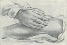 ![]() Рис. 2. Визначення випоту в колінному суглобі.  |
