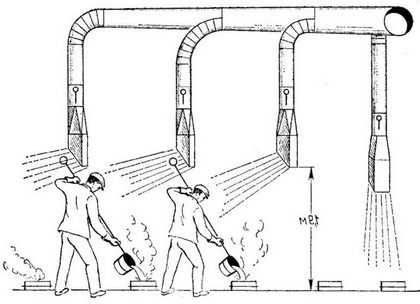 Рис. 29. Схема отдувающей вентиляції (повітряний душ) в ливарному цеху.